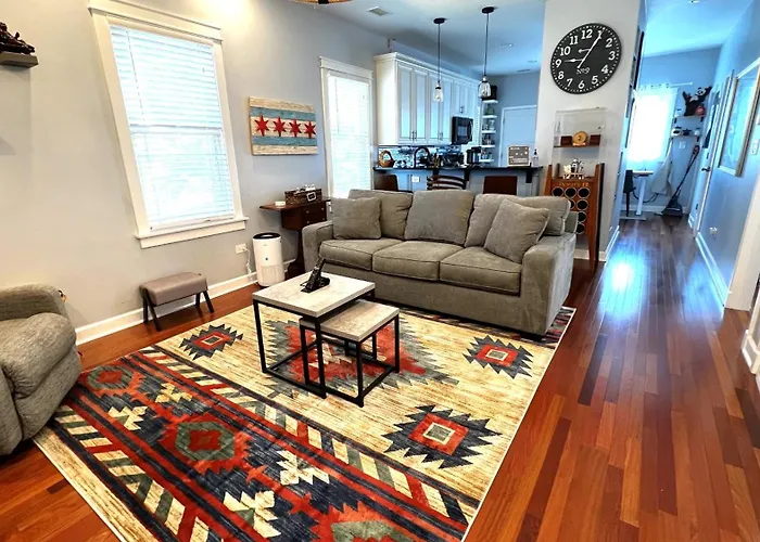 Diese 93 m² großen Apartments liegt 5 Fußminuten von der U-Bahn-Station Ashland und ungefähr 10 Autominuten vom Skydeck Chicago entfernt. Das U.S. Cellular Field ist in etwa 2 km Entfernung vom Apartment gelegen.